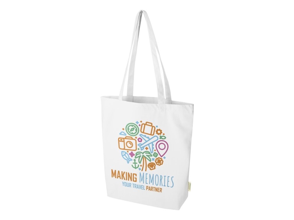 Nákupná taška Orissa so širokým dnom a dlhými ušami zo 100% biobavlny o gramáži 270 g/m2. Objemová kapacita: 10 litrov.