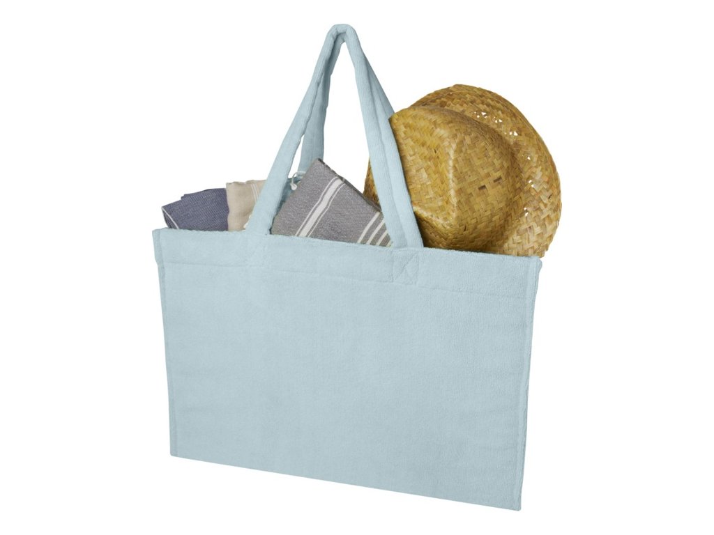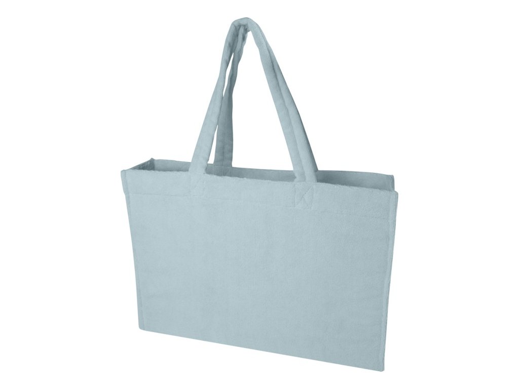 Mäkká, štýlová froté nákupná taška z plyšovej froté tkaniny s certifikáciou GRS (88 % recyklovaného polyesteru, 12 % polyamidu). 27cm vysúvacie ucho, objem 13 litrov. V ponuke aj polokošeľa a klobúk z rovnakého materiálu.