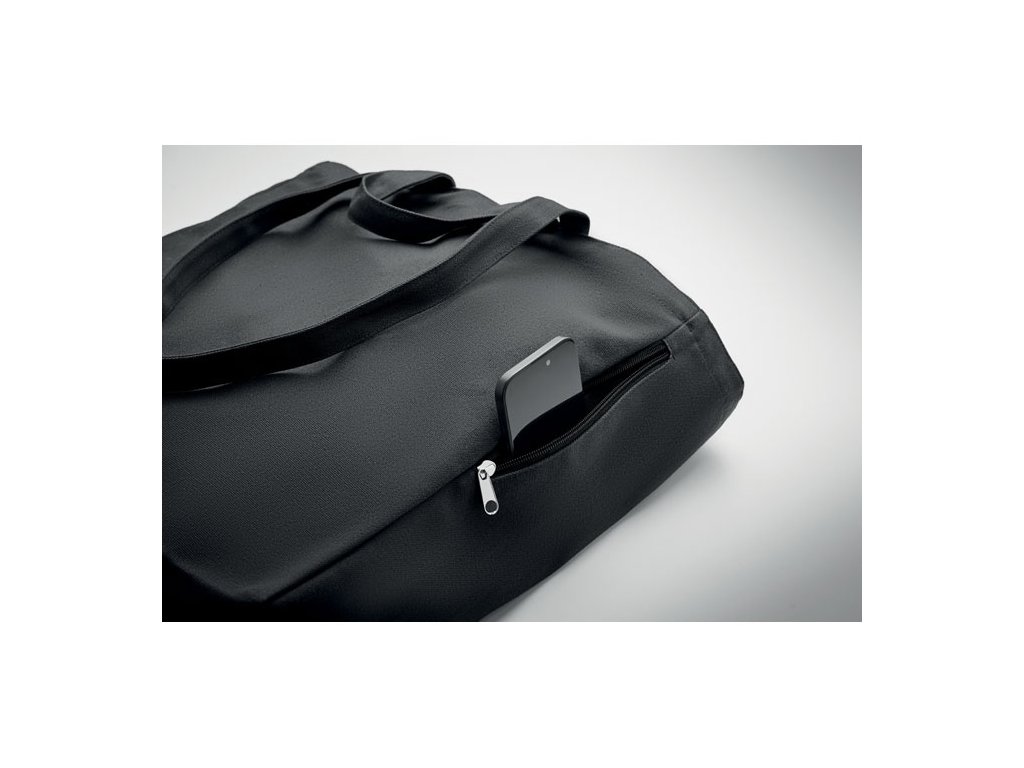 Nákupná alebo plážová taška z recyklovanej polybavlny (70 % recyklovaná bavlna, 30 % recyklovaný polyester) s krátkymi a dlhými rúčkami. Má bočné vrecko na zips. Gramáž 380 g/m2.