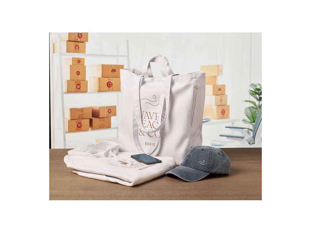Nákupná alebo plážová taška z recyklovanej polybavlny (70 % recyklovaná bavlna, 30 % recyklovaný polyester) s krátkymi a dlhými rúčkami. Má bočné vrecko na zips. Gramáž 380 g/m2.