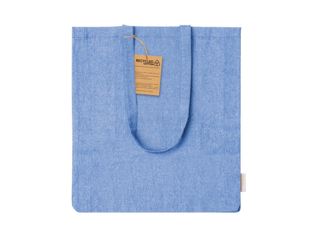 Nákupná taška z recyklovanej bavlny s klinom, dlhými ušami a výrazným štítkom z recyklovanej bavlny.