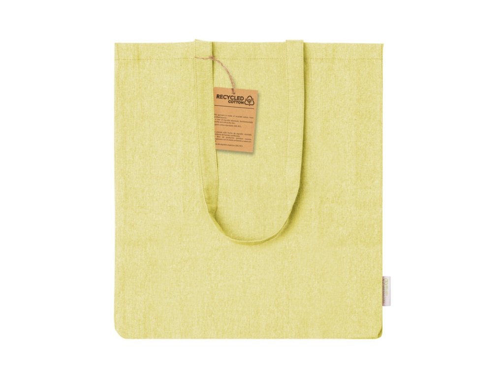 Nákupná taška z recyklovanej bavlny s klinom, dlhými ušami a výrazným štítkom z recyklovanej bavlny.