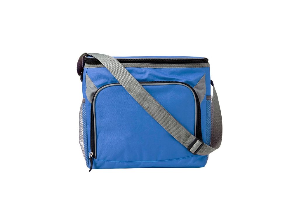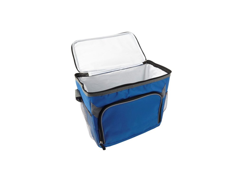 Obdĺžniková chladiaca termotaška z PES 600D na zips s vreckom vpredu a 2 bočnými vreckami zo sieťoviny.