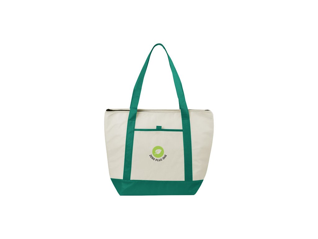 Netkaná termotaška s hlavným priestorom na zips a dvoma ušami.