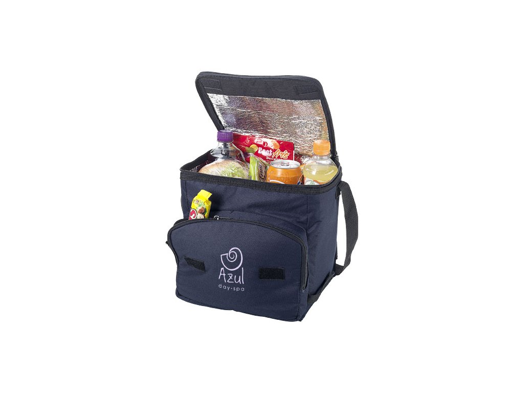 Skladacia termotaška s hlavným priestorom, predným vreckom na zips a nastaviteľným ramenným popruhom.