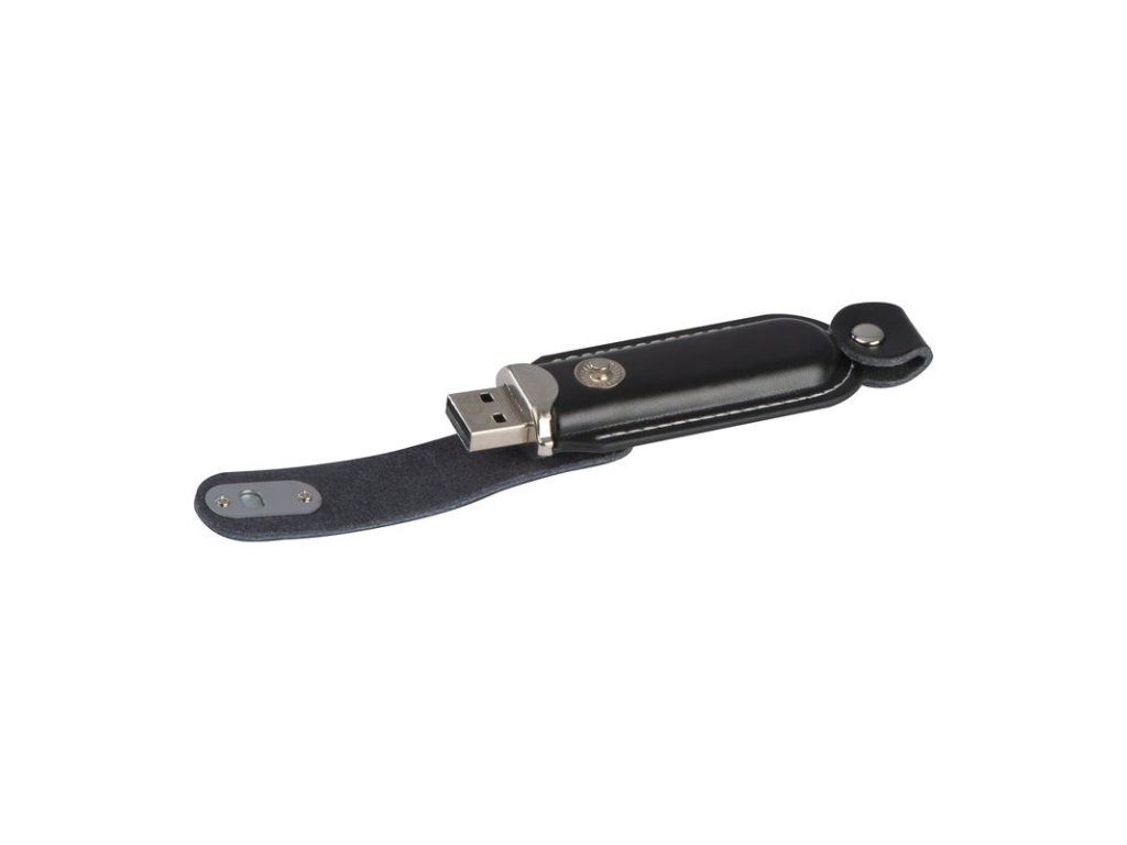 USB flash disk v koženom obale s úložnou kapacitou 4 GB.