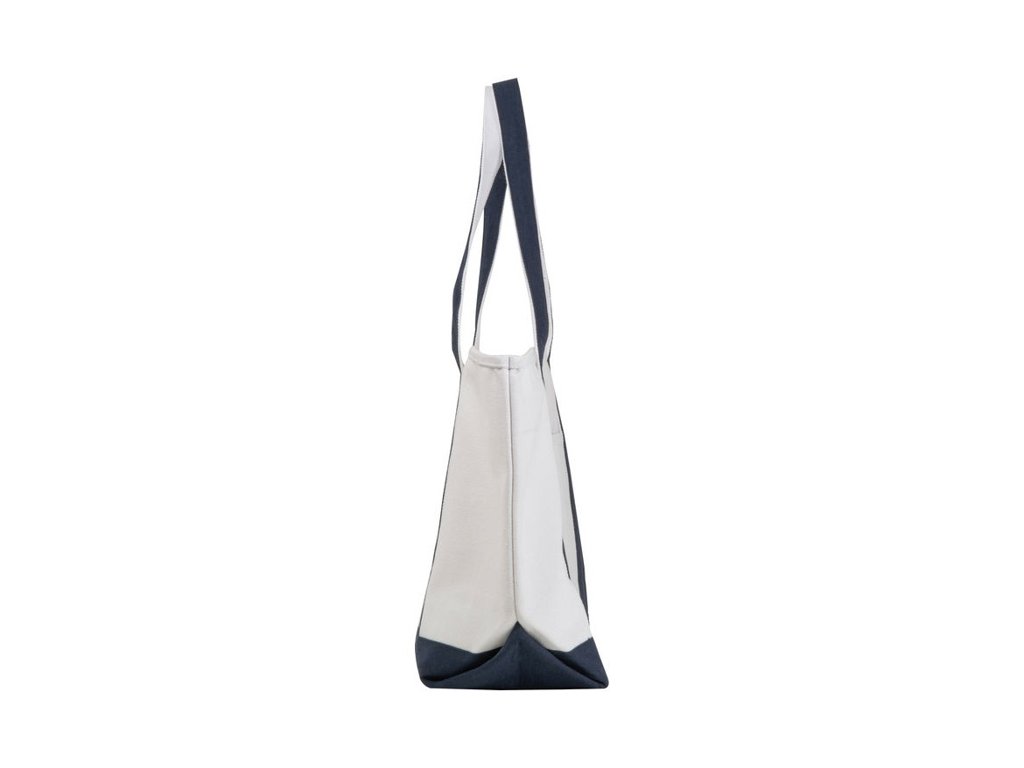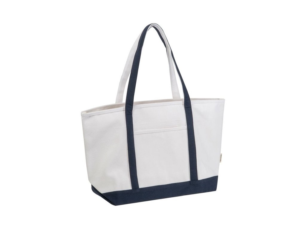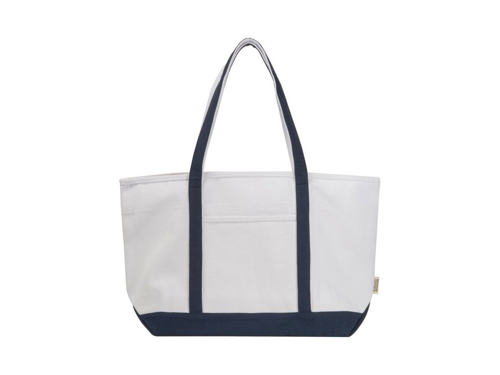 Robustná taška (730 g/m2) z recyklovanej bavlny s dvoma farebnými dlhými popruhmi a stabilným dnom. Univerzálne použitie na nákupy, pláž a pod.