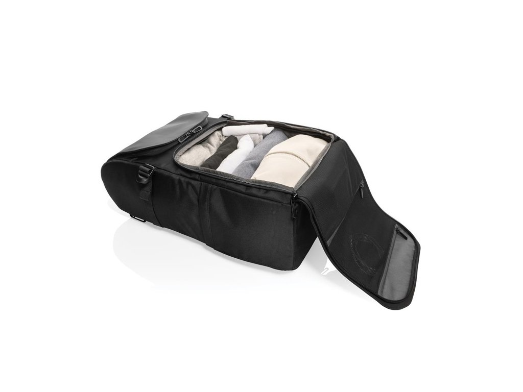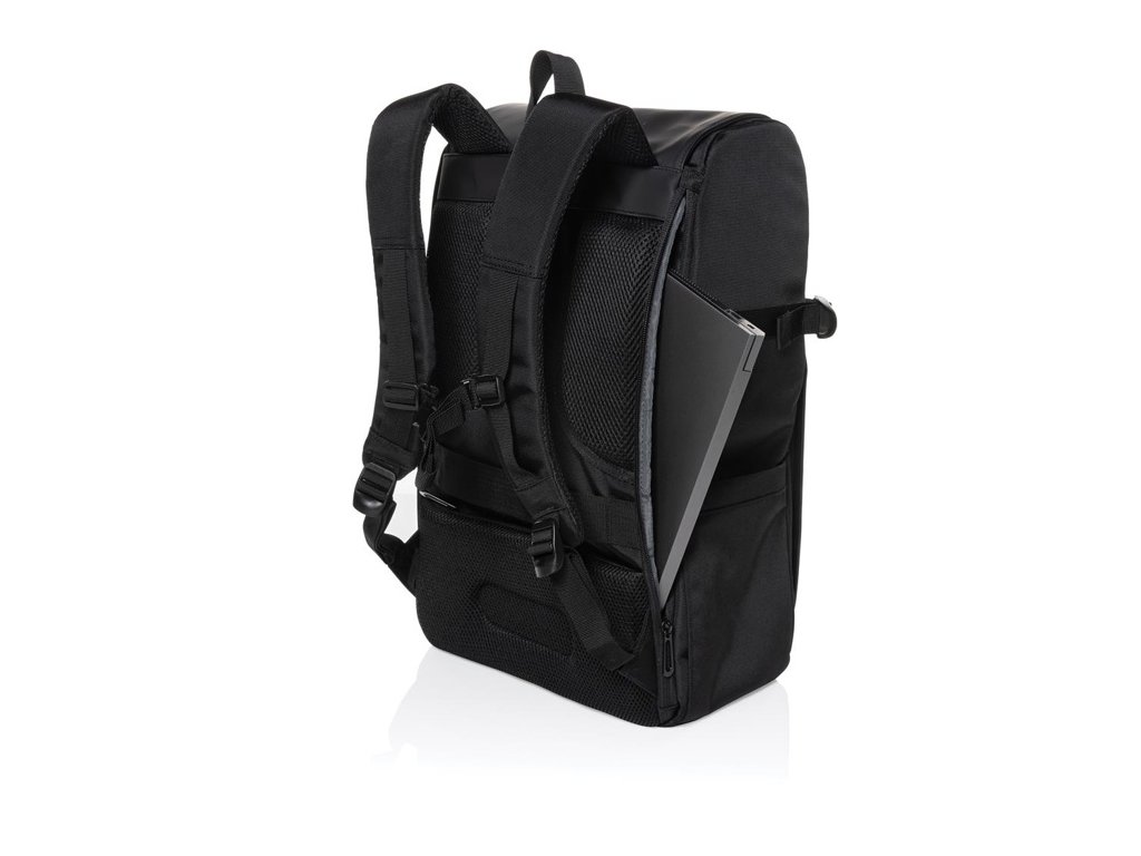 2 veľké predné vrecká, 3 sieťové vrecká. Rozšíriteľný hlavný priestor. Polstrovaný oddiel pre 15,6" notebook je dostupný cez bočný prístup na zips. Vrátane skenovateľnej zložky AWARE™. 2% z každého predaného produktu na podporu iniciatívy Water.org.
