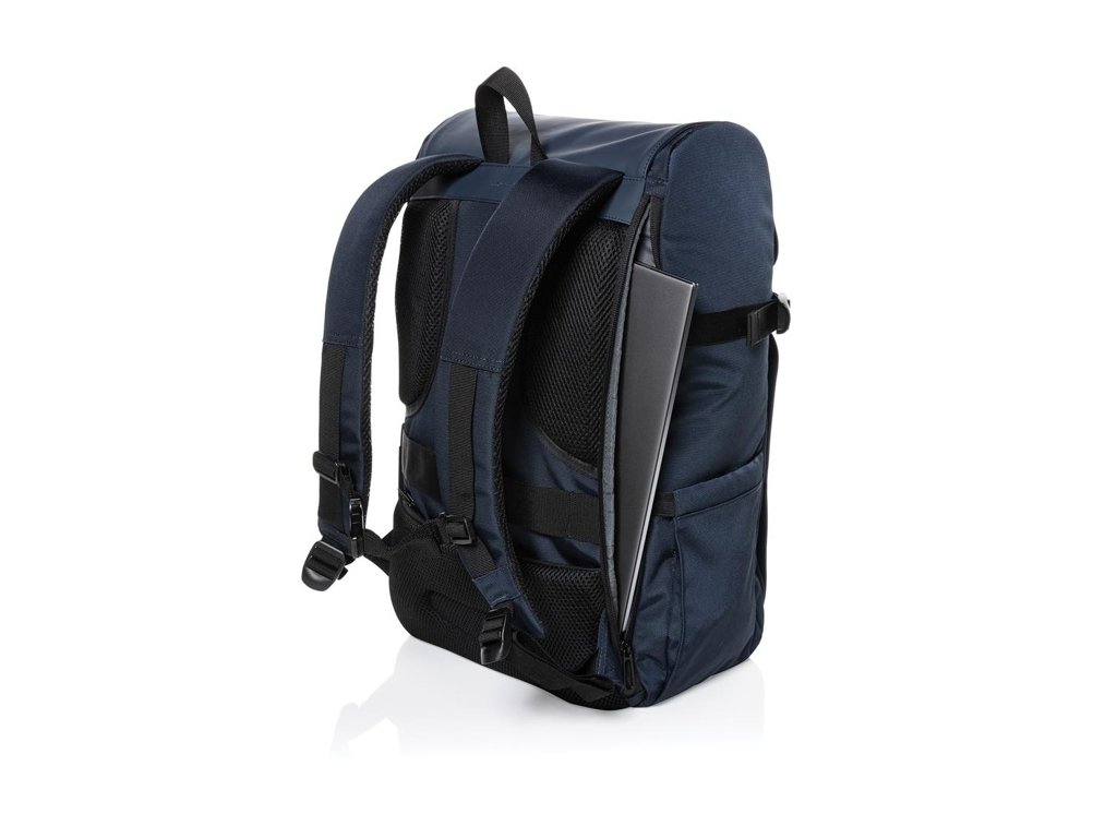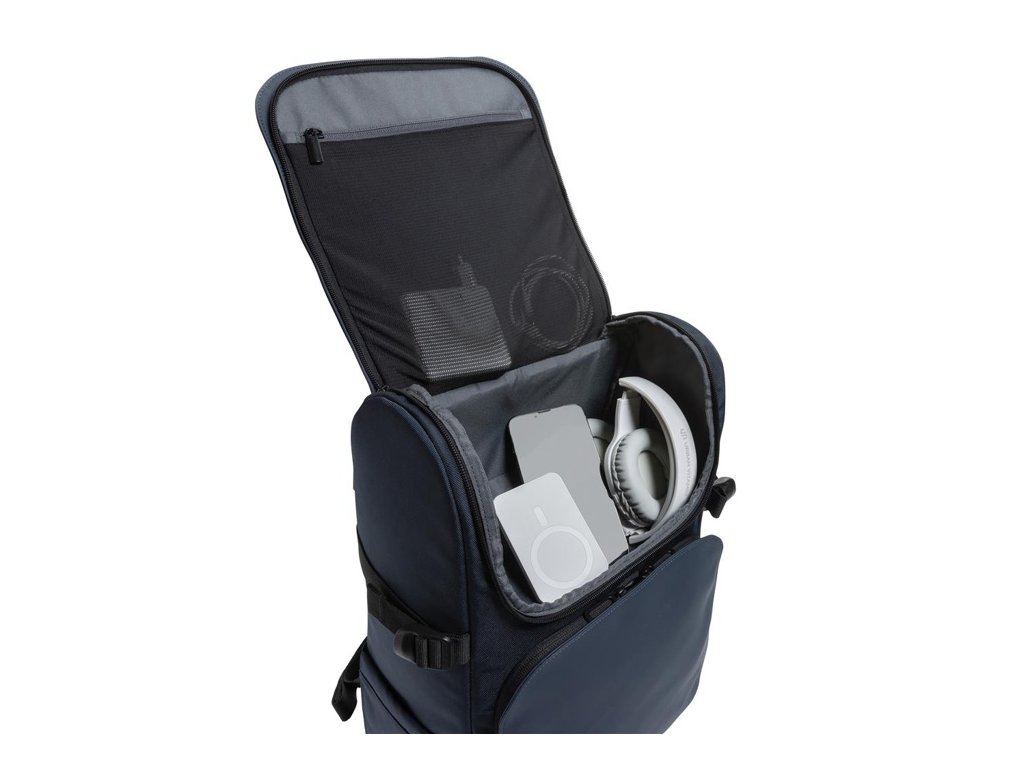 2 veľké predné vrecká, 3 sieťové vrecká. Rozšíriteľný hlavný priestor. Polstrovaný oddiel pre 15,6" notebook je dostupný cez bočný prístup na zips. Vrátane skenovateľnej zložky AWARE™. 2% z každého predaného produktu na podporu iniciatívy Water.org.