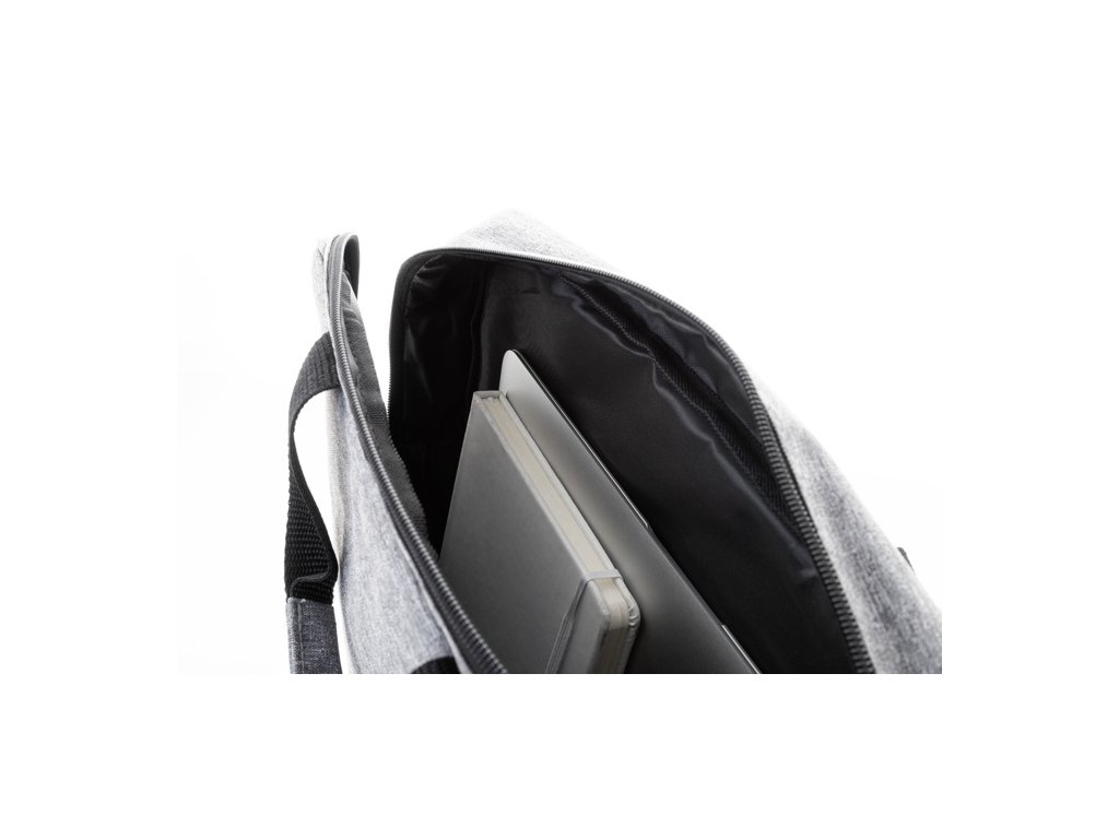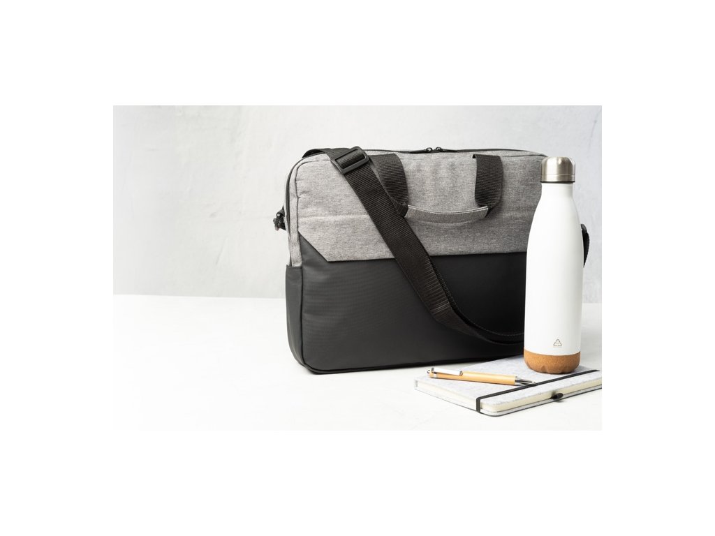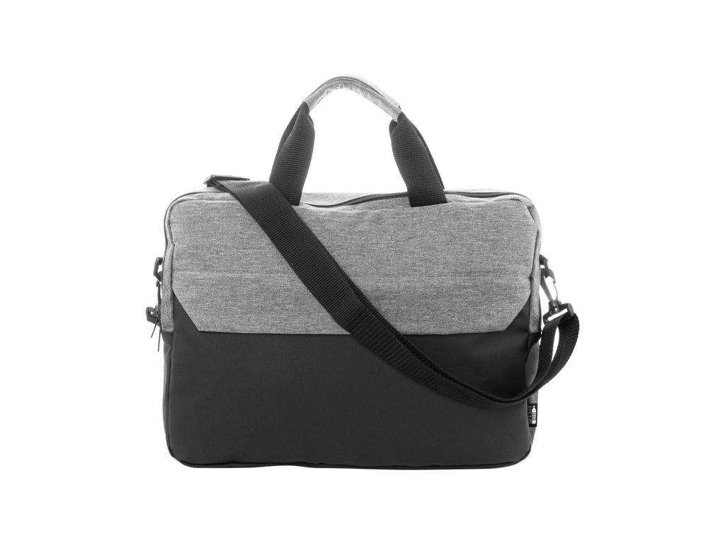 Vodotesná RPET polstrovaná taška na dokumenty a notebook s hlavnou priehradkou na zips, predným vreckom na zips a nastaviteľným ramenným popruhom. Vhodné pre notebooky do 15". 600D RPET polyester potiahnutý PU s výrazným štítkom RPET.