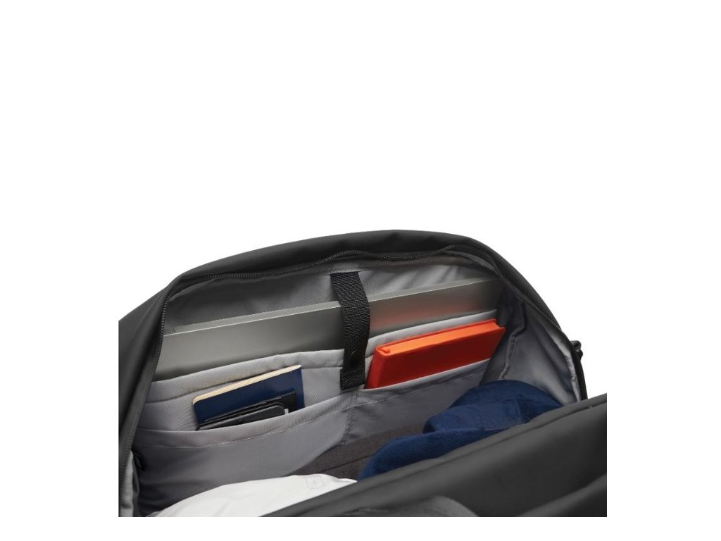 Povrch z vodeodolného PU a vodeodolný zips udržia vaše veci v suchu. Ľahký prístup k veciam, priehradka na 16" notebook a vnútorné sieťované vrecko. Podšívka z RPET so značením Aware™. Podiel recyklátu: 63%. Registrovaný design®.
