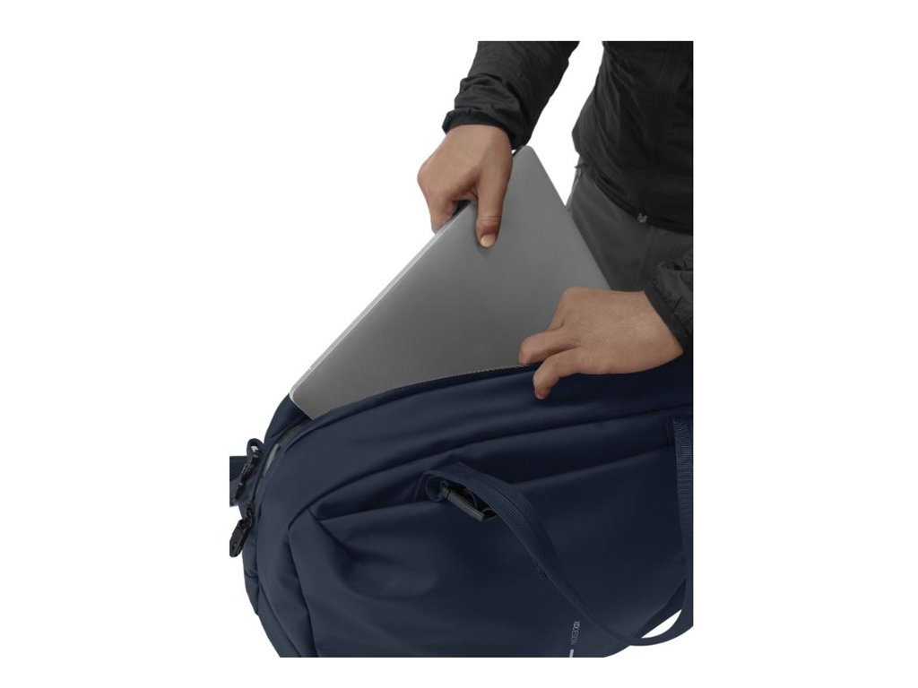 Povrch z vodeodolného PU a vodeodolný zips udržia vaše veci v suchu. Ľahký prístup k veciam, priehradka na 16" notebook a vnútorné sieťované vrecko. Podšívka z RPET so značením Aware™. Podiel recyklátu: 63%. Registrovaný design®.