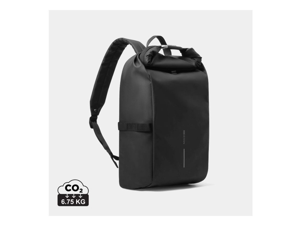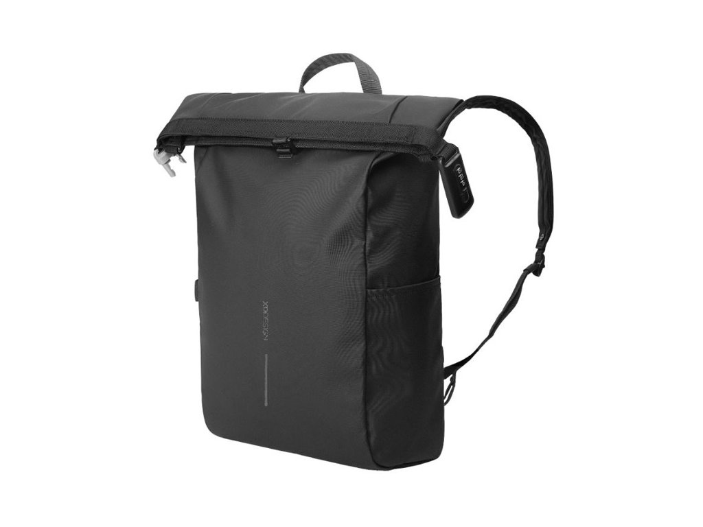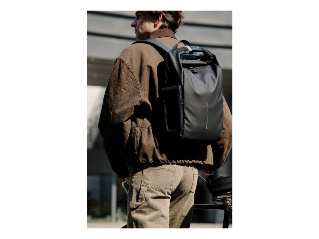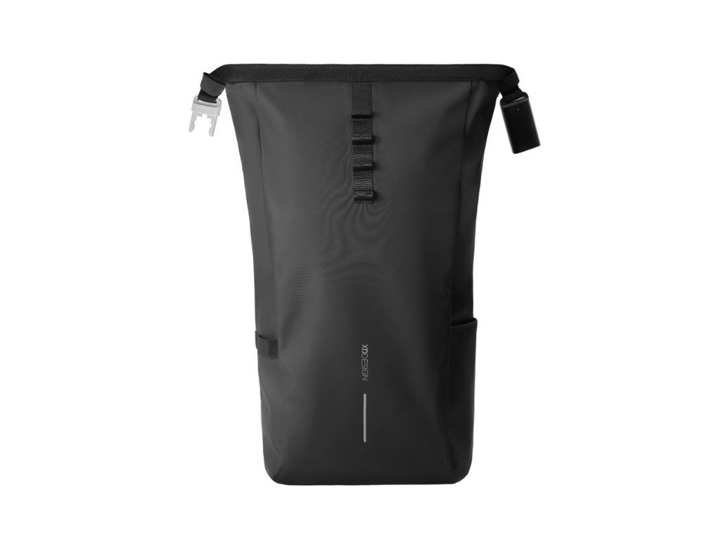 Hlavnú priehradku je možné zrolovať a zaistiť kombinačným zámkom, možnosť uzamknúť k pevnému predmetu alebo pripevniť k rámu kolesa. Polstrované vrecko na 16" laptop a sieťované vrecká na drobnosti. Vonkajšia časť z vodeodolného PU. Registrovaný design