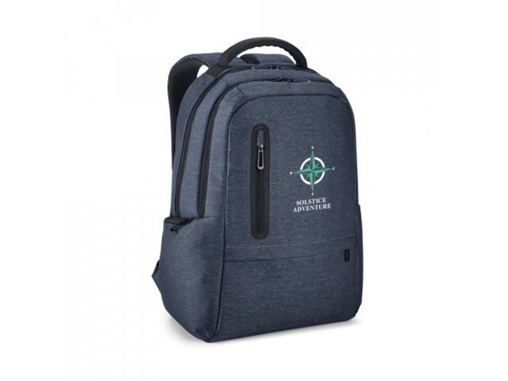 Batoh z nepremokavého 2-tónového rec. nylonu. Polstrované vrecko na notebook do 17", prednú priehradku s niekoľkými vreckami vo vnútri. Batoh má 2 predné vrecká a 2 bočné vrecká. Polstrovaný chrbát s vreckom na zips a popruh na kufor.