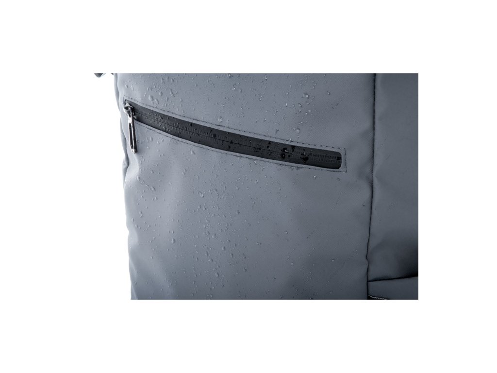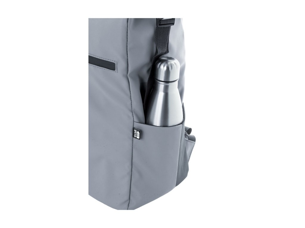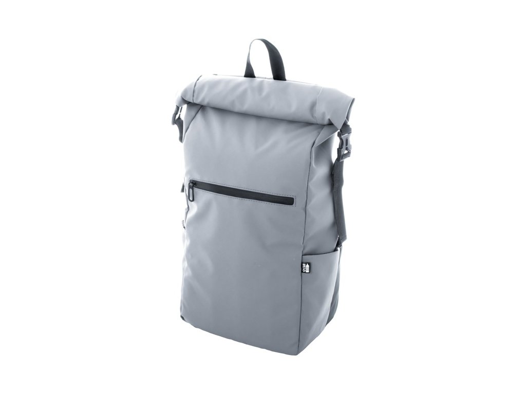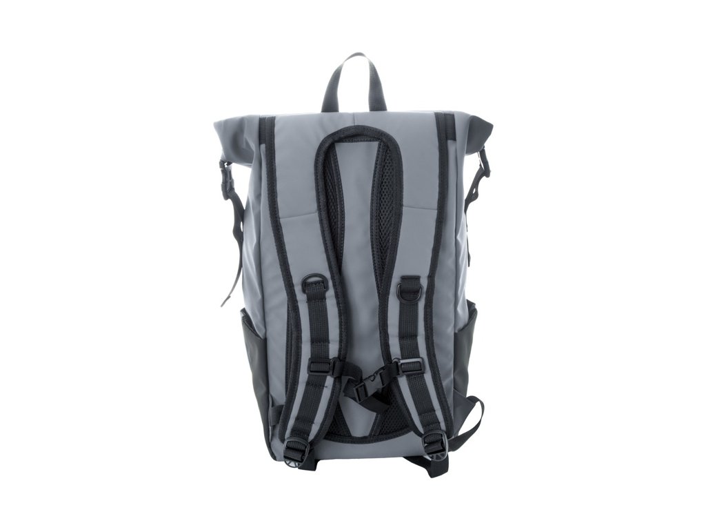 Vodotesný rolovací batoh z RPET so zapínaním na pracku a suchý zips, polstrovaná priehradka na notebook (16") a tablet (10"), predné vrecko na zips, bočné vrecká, polstrovaný chrbát a ramenné popruhy. Polyester 600D RPET potiahnutý PU, s výrazným štítkom