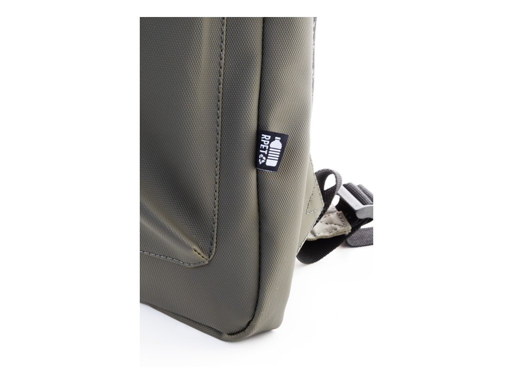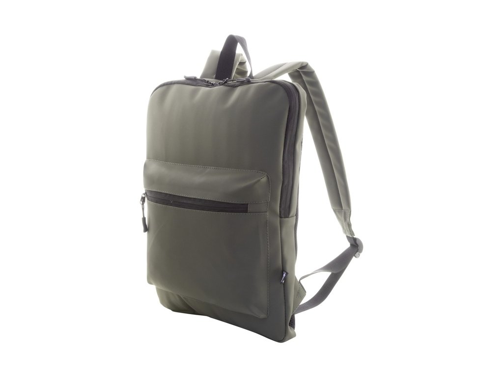 Vodotesný tenký batoh na notebook RPET s priehradkou na notebook (15") na zips a predným vreckom na zips. S polstrovaným chrbtom a ramennými popruhmi. Polyester 600D RPET potiahnutý PU, s výrazným štítkom RPET.