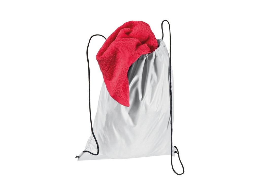 Vrecúško z recyklovaného polyesteru 210D s dvoma bočnými šnúrkami ako nosnými popruhmi.