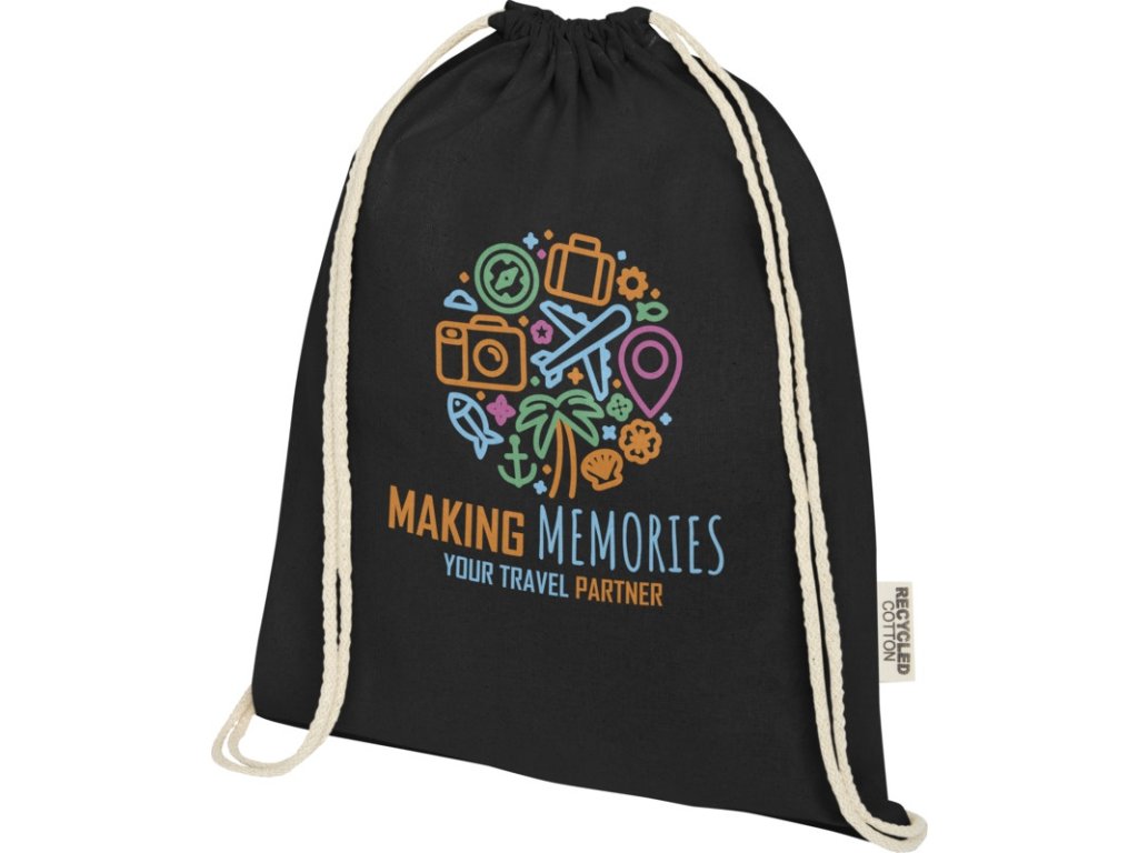 Batoh so šnúrkou Oregon vyrobený zo 100% recyklovanej bavlny s certifikáciou GRS. Sťahovacia šnúrka uľahčuje otváranie a zatváranie a bavlnený materiál o gramáži 140 g/m? je pevný a odolný. Nosnosť do 5 kg.
