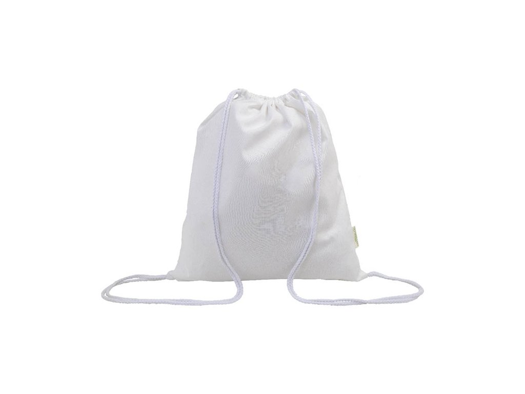 Vak so sťahovacou šnúrkou zo 70% recyklovanej bavlny a 30% polyesteru RPET, 140 g/m2. S výrazným štítkom z recyklovanej bavlny.