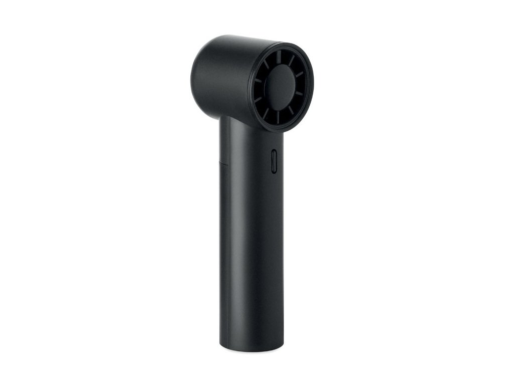 Ručný mini ventilátor z ABS materiálu s displejom a 5 nastaveniami rýchlosti. Súčasťou balenia je vymeniteľná nabíjateľná lítiová batéria s kapacitou 2600 mAh.