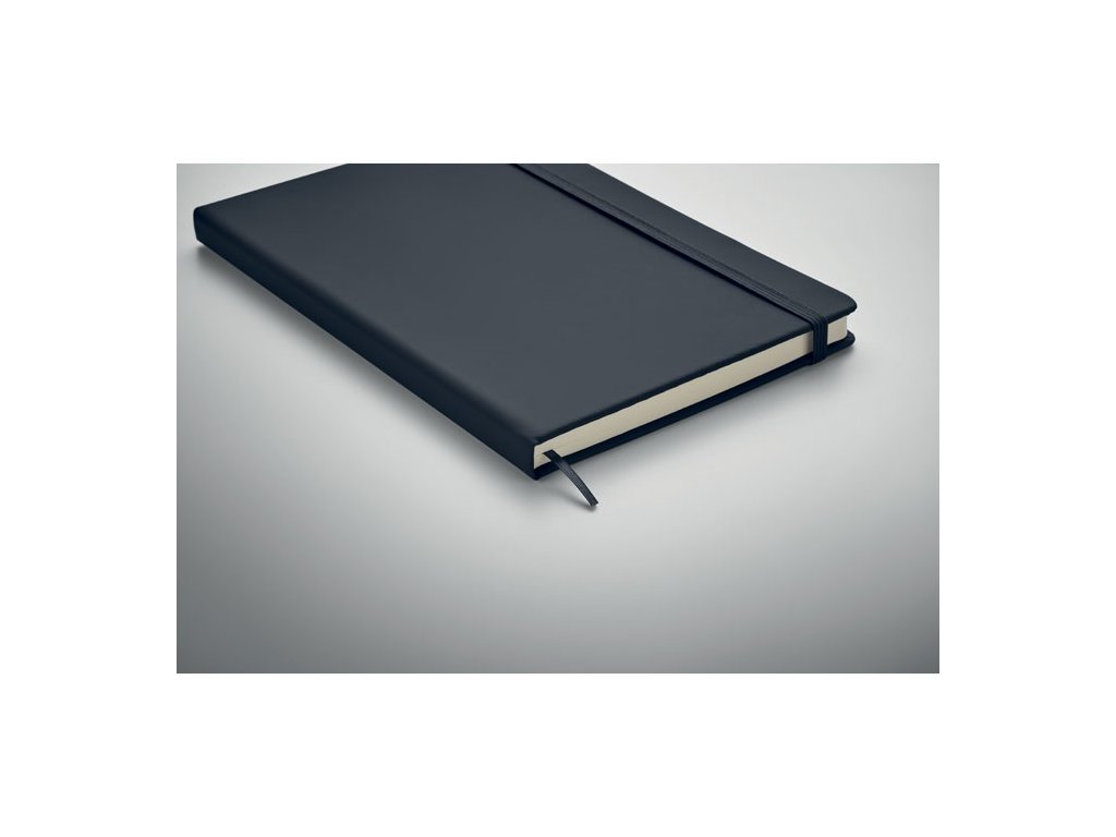 Zápisník A5 s tvrdým PU obalom. 192 strán čistého recyklovaného papiera (96 listov). Gumička a stužka v rovnakej farbe.