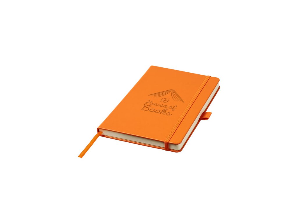 Zápisník A5 s imitáciou kože A5 (14,2 cm x 21,4 cm) (koženka) s elastickou gumičkou, záložkou, pútkom na pero a skladacím zadným vreckom.