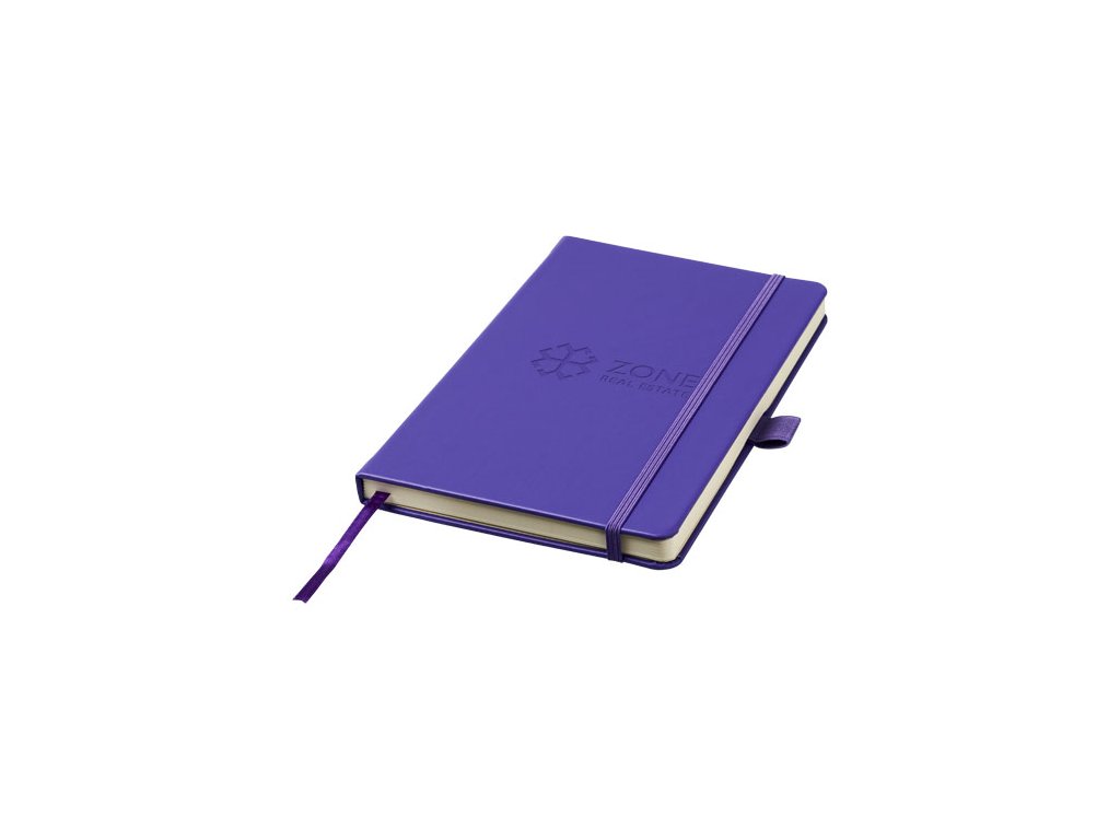 Zápisník A5 s imitáciou kože A5 (14,2 cm x 21,4 cm) (koženka) s elastickou gumičkou, záložkou, pútkom na pero a skladacím zadným vreckom.