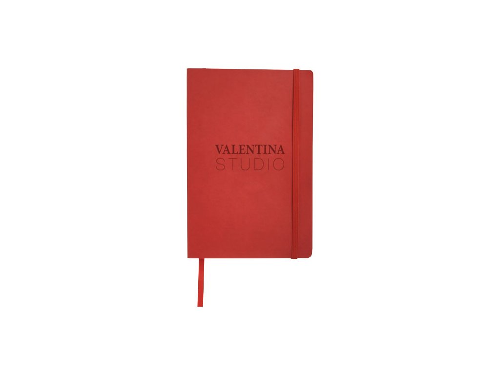 Zápisník s elastickou gumičkou, záložkou zo stužky, priehradkou na vnútornej zadnej strane a 80 listami 80g/m2 linajkového papiera.