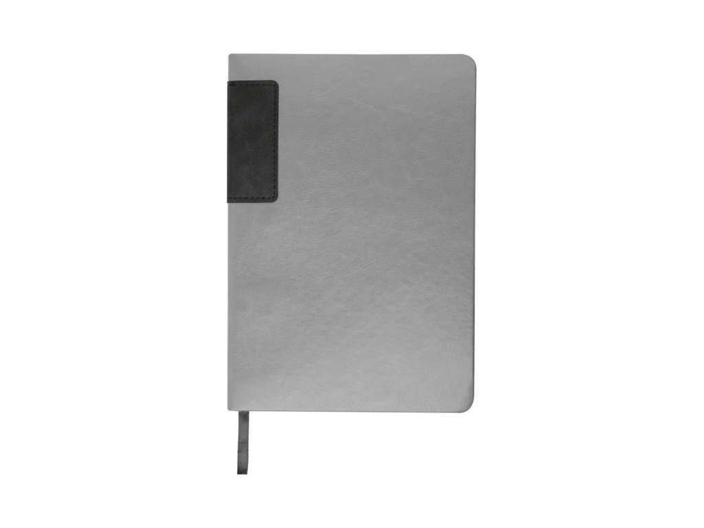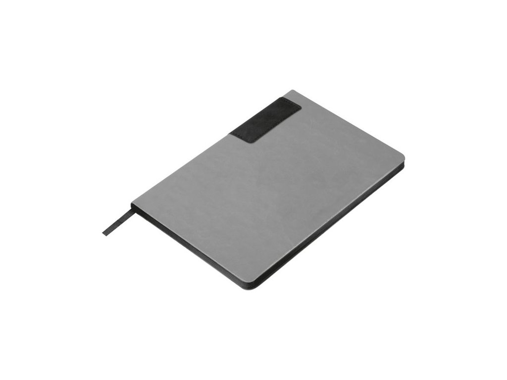 Sivý zápisník A5 s recyklovaným PU obalom, 160 linajkových strán (80 listov) z recyklovaného papiera, s farebnými okrajmi.