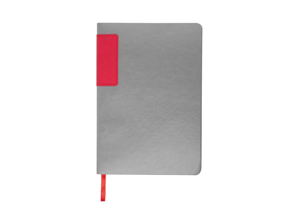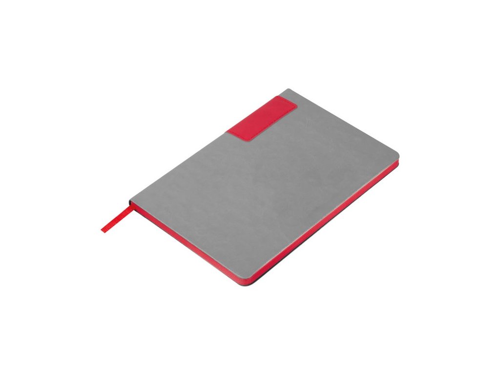 Sivý zápisník A5 s recyklovaným PU obalom, 160 linajkových strán (80 listov) z recyklovaného papiera, s farebnými okrajmi.