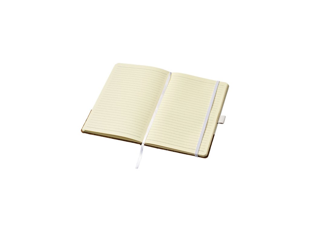 Je vybavený elastickou gumičkou rovnakej farby, záložkou zo stužky, 80 listami krémového linajkového papiera 80g/m2 a rozkladacím vreckom n