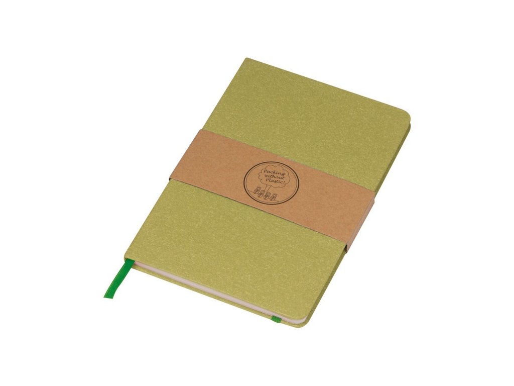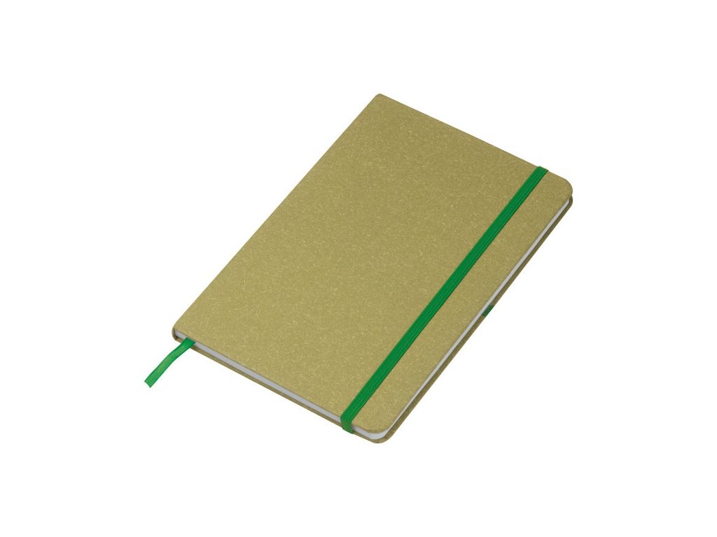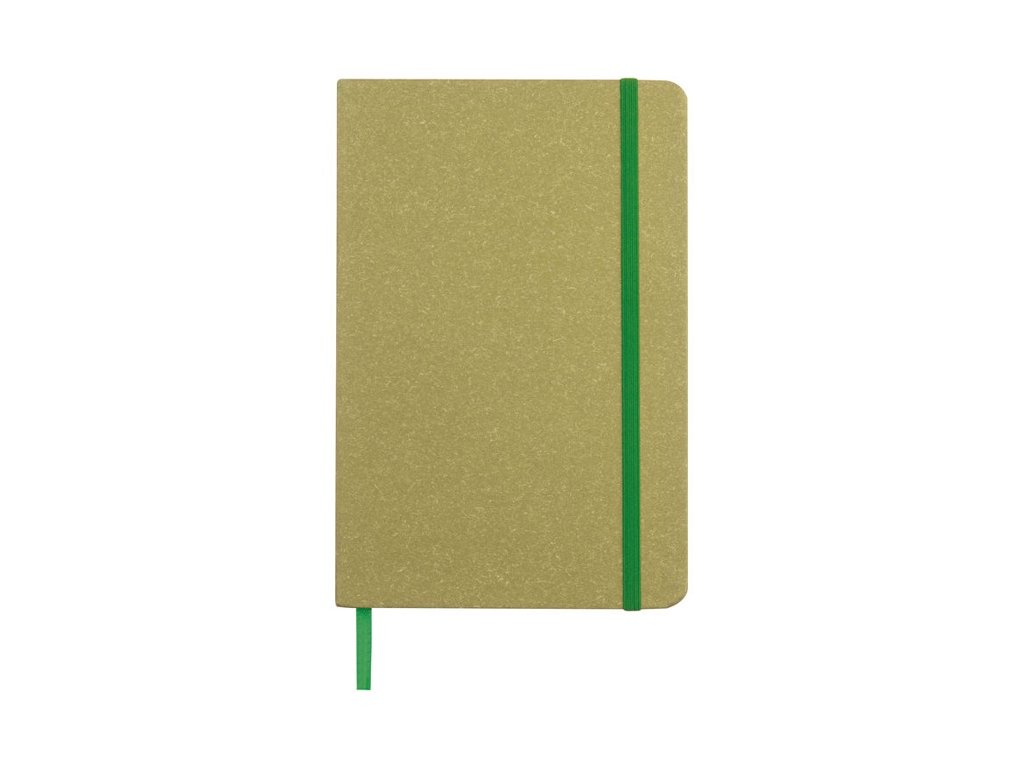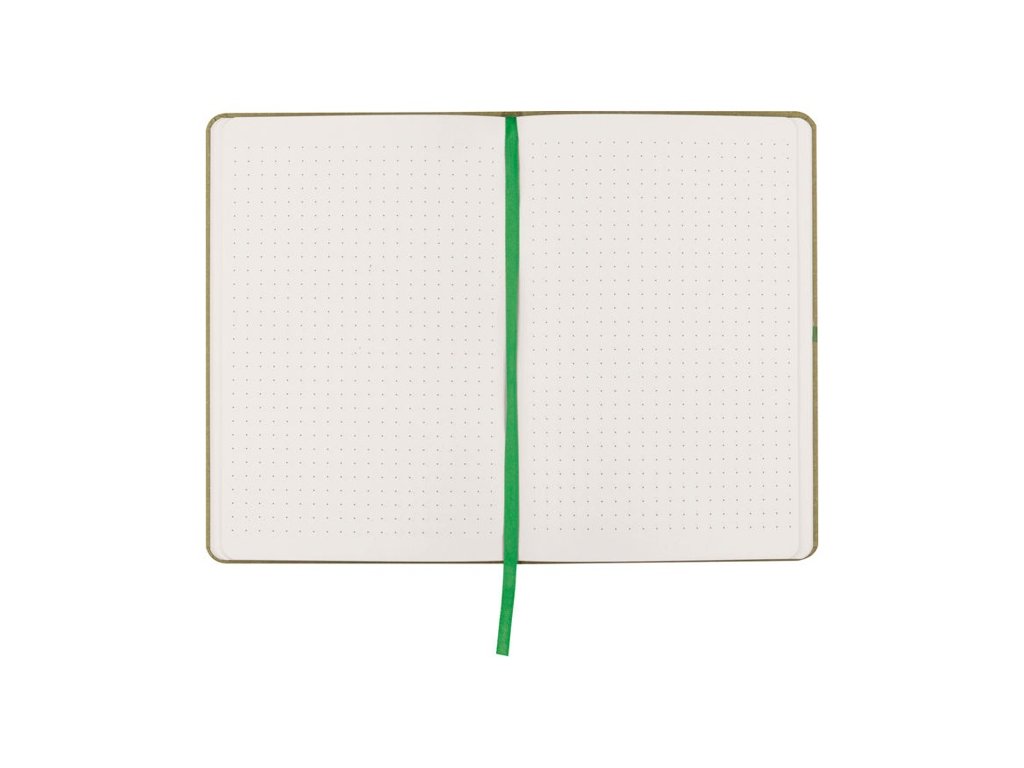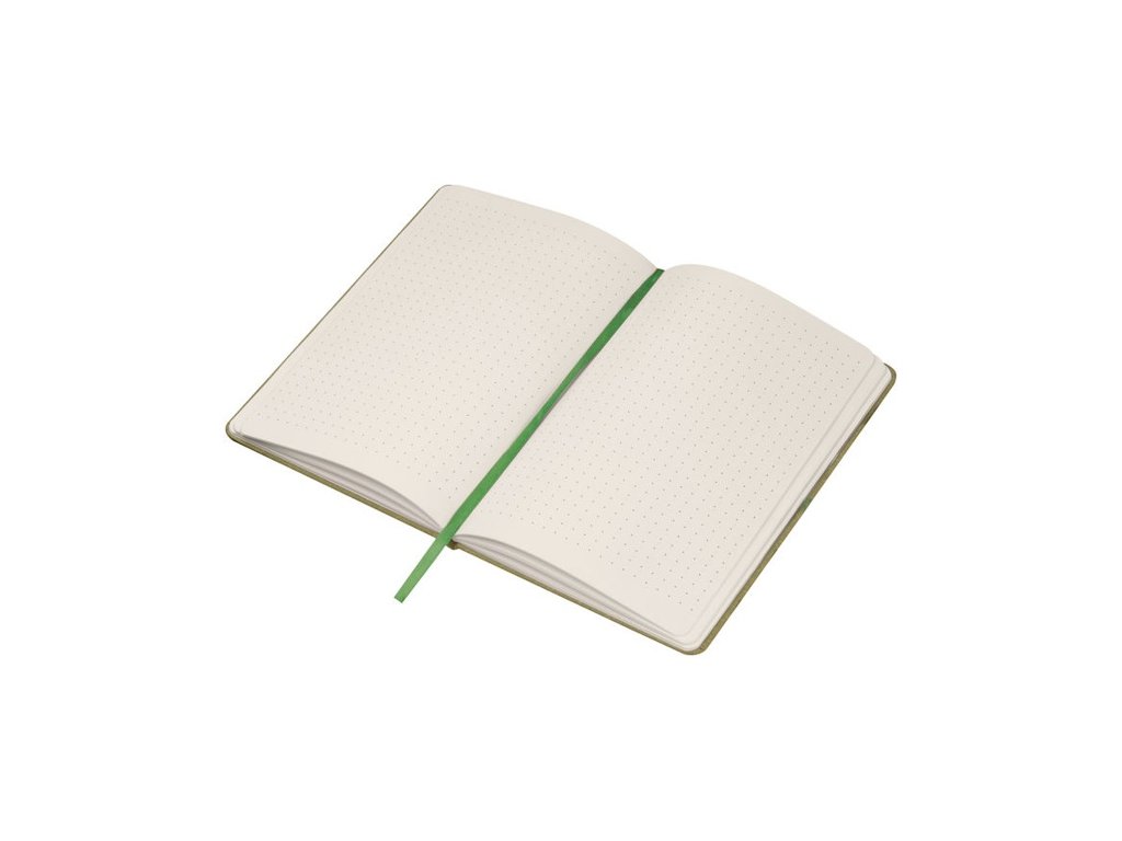 Poznámkový blok A5 s obalom z recyklovaného kartónu, záložkou, 160 bodkovanými stranami a zatváraním na gumičku.