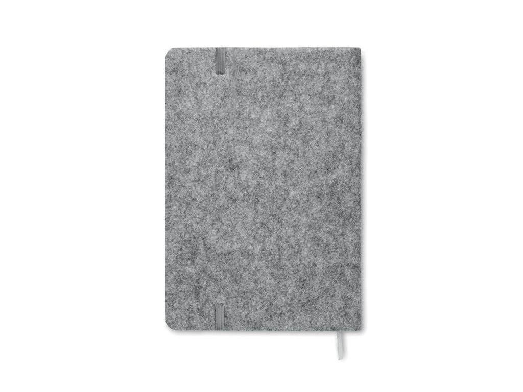 Zápisník A5 s RPET plsteným obalom a korkom. 160 linajkových strán z recyklovaného papiera (80 listov). Elastické pútko na pero vpredu, zodpovedajúci elastický remienok na zapínanie a záložka.