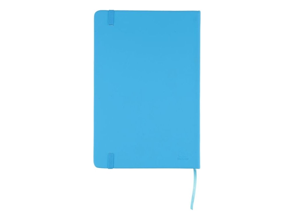 Zápisník z RPET s tvrdou väzbou z rPET PU, obsahuje 80 linajkových strán (70 g/m2). S gumičkou a stuhou v zodpovedajúcej farbe. Na zadnej strane je vyrazené recyklované logo.