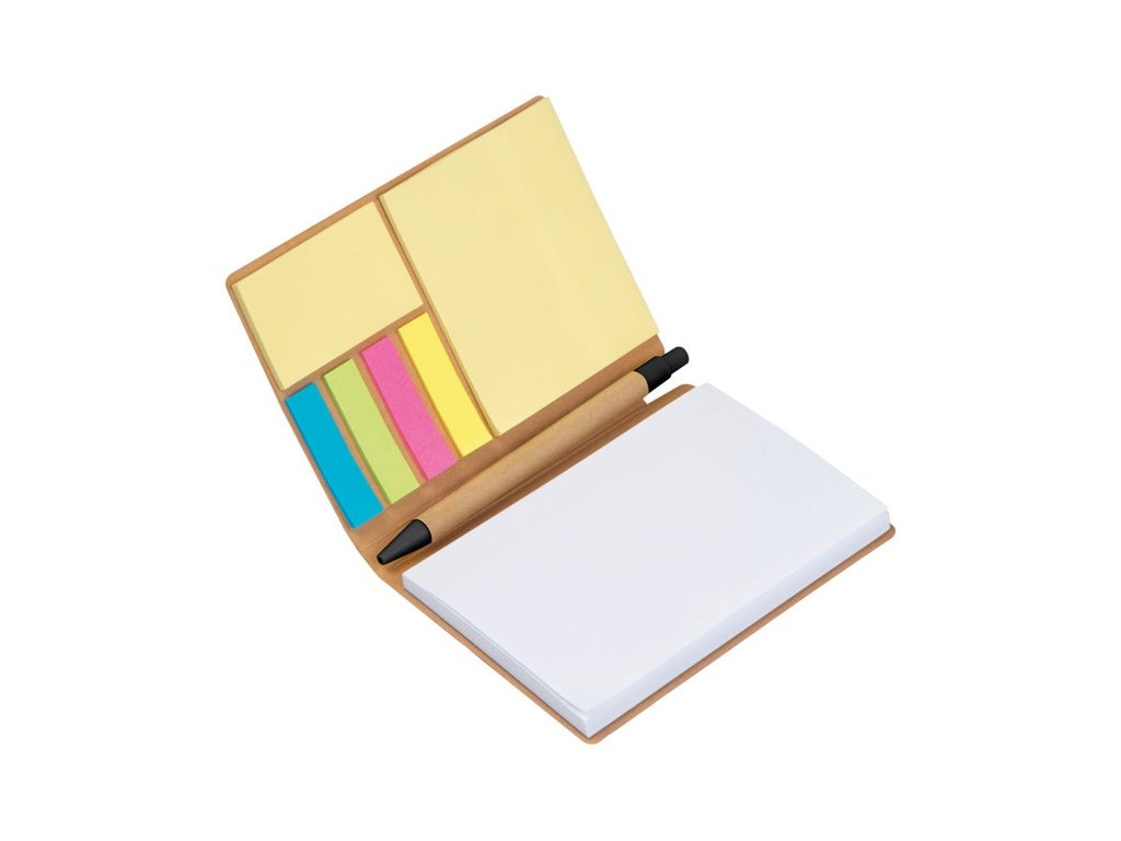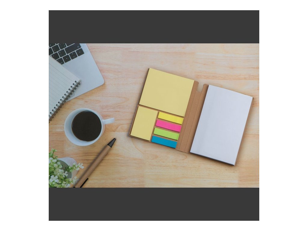 Zápisník s modrým guľôčkovým perom. Sada obsahuje 70 ks čisté strány, 25 ks veľkých a malých lepiacich papierikov a 25 farebných lepiacich štítkov.
