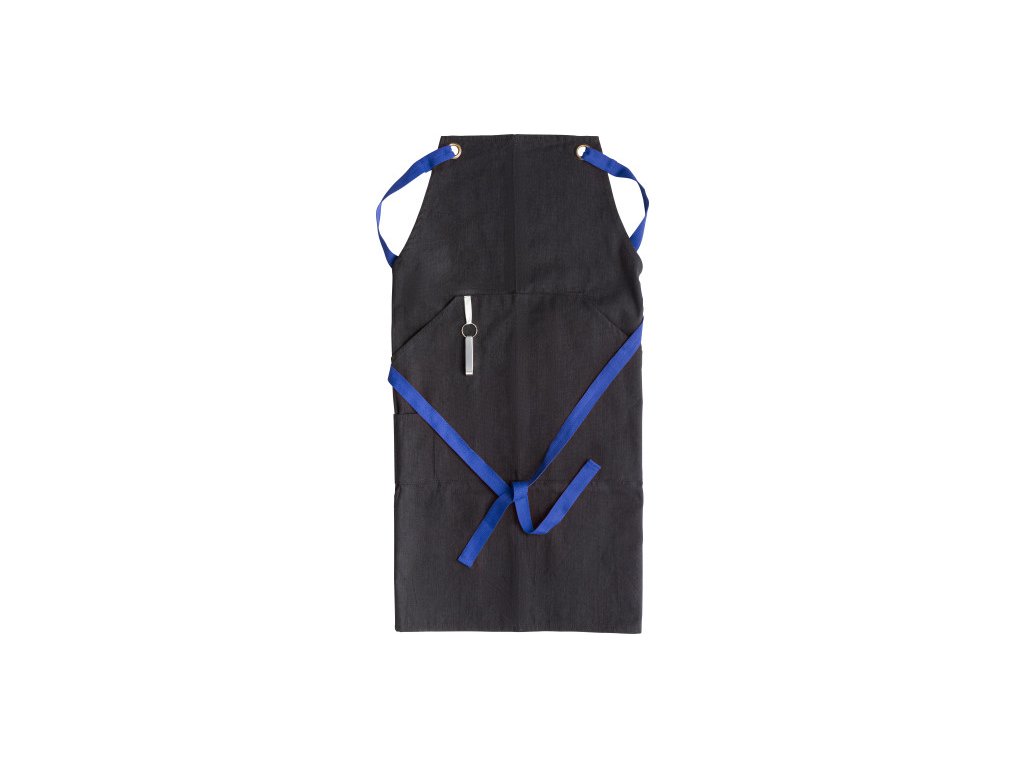 Polyesterová a bavlnená zástera s farebnými pásmi a predným vreckom. Obsahuje otvárač na fľaše.