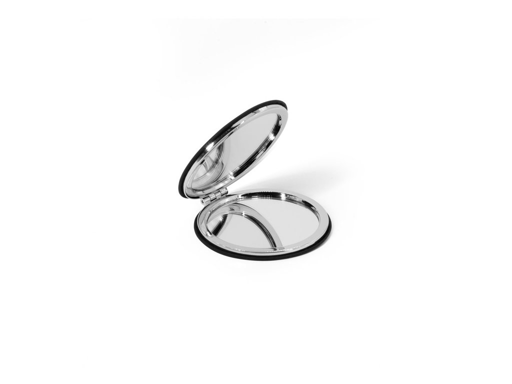 Obojstranné okrúhle zrkadlo s matným PU povrchom a kovovým rámom vnútri. Jedna strana zrkadla je normálna, druhá zväčšovacia. Dodáva sa v darčekovej krabičke