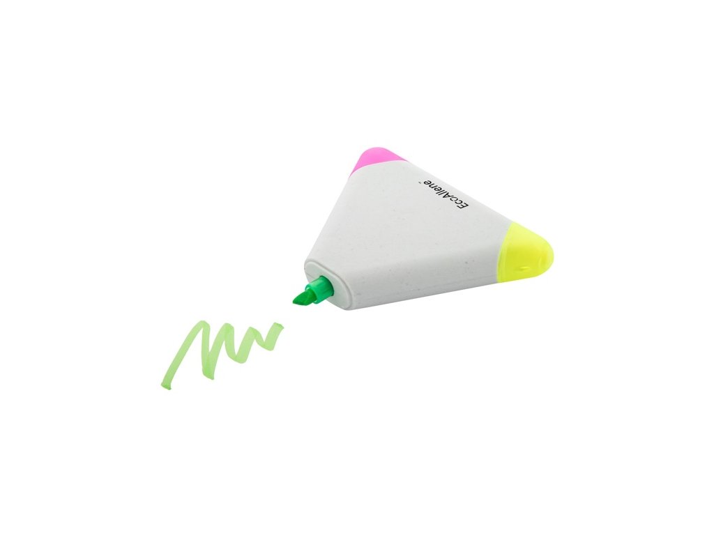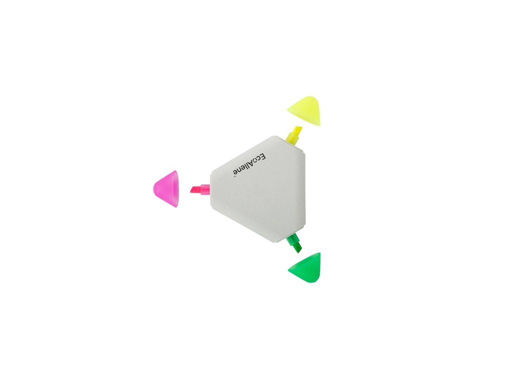 Zvýrazňovač v tvare trojuholníka s 3 farbami z recyklovaného plastu EcoAllene®. Ide o nový a inovatívny materiál získaný z recyklácie nápojových kartónov.